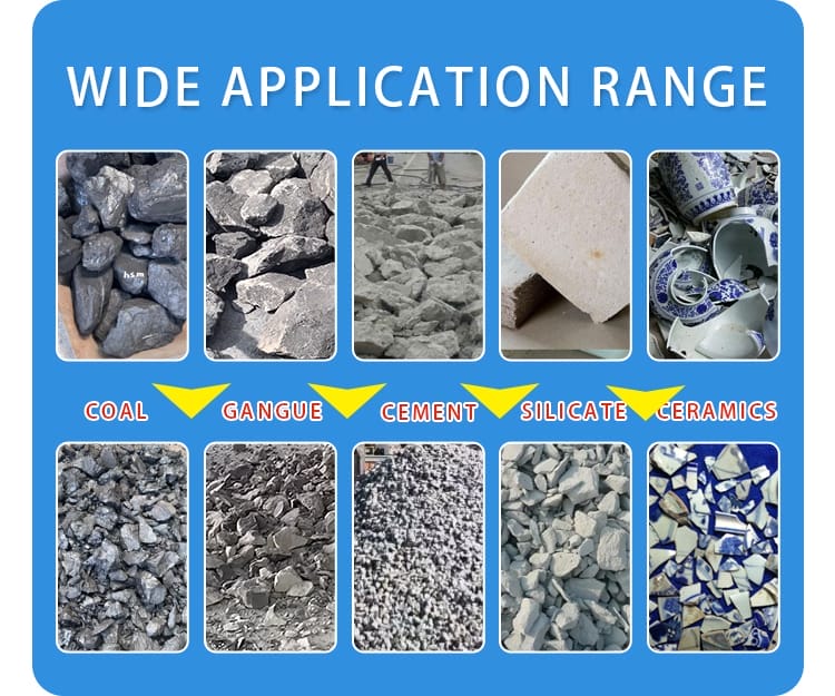 Double Toothed Roll Crusher is composed of two horizontally arranged rolls with toothed teeth, the rolls have: coarse teeth, fine teeth, wolf teeth, the rotating rolls produce squeezing force and shear force to crush the materials. The main components include transmission device (motor, reducer, hydraulic coupling), crushing roller, hydraulic/spring adjustment system, overload protection device. After entering the gap between the two rolls, the material is crushed by the splitting and shearing force of the rolls, and the size of the finished product is controlled by adjusting the roll spacing (accuracy ±1mm).